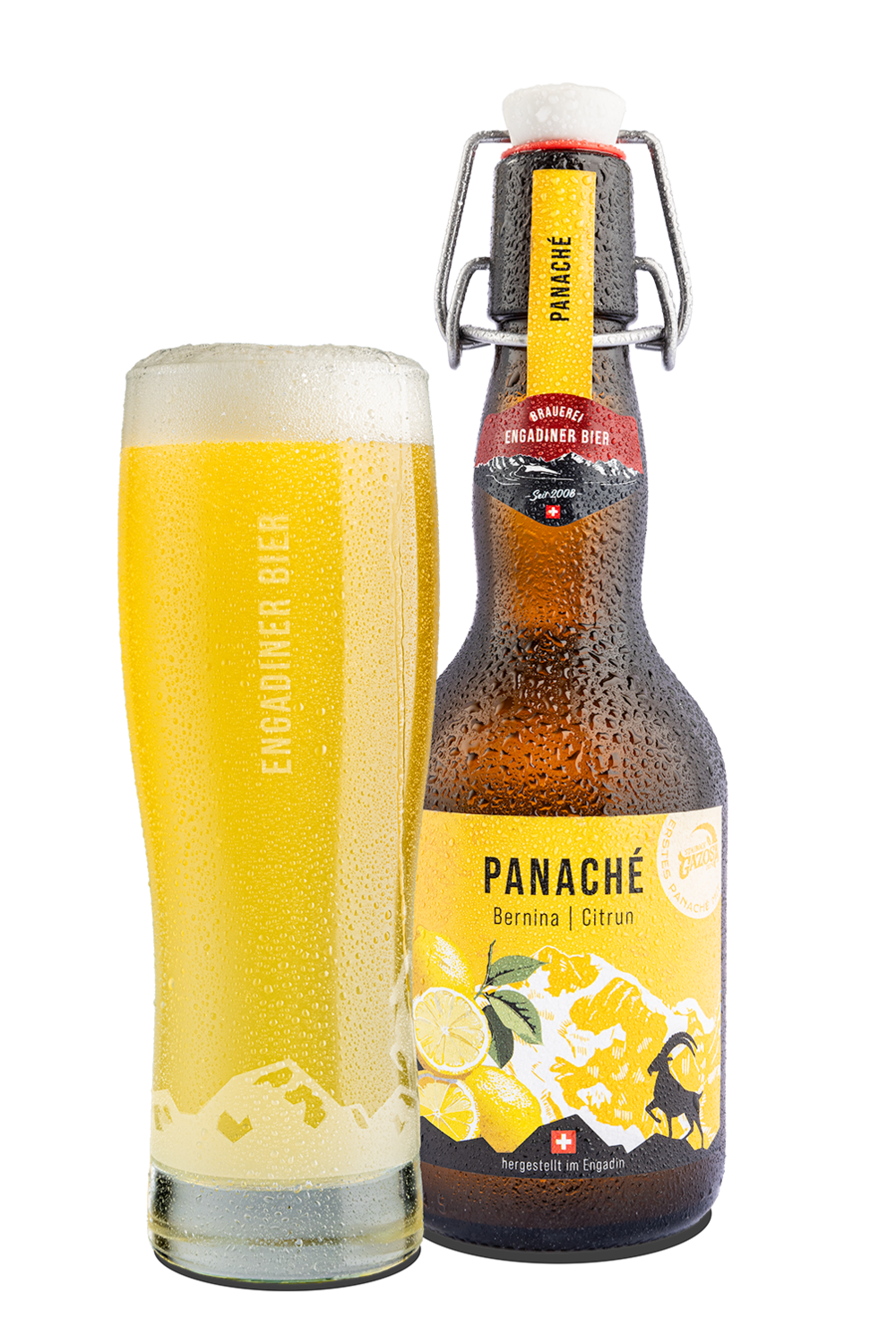 Die Kombination aus Bernina Bier hell und der Staibock Gazosa Citrun ist eine einzigartige Mischung. Hier trifft die Klarheit des Engadiner Wassers auf den Geschmack einer sizilianischen Zitrone, hochalpine Gelassenheit auf mediterrane Lebensfreude, Berg auf Strand, Allegra auf Divertimento, Skilehrer auf Gigolo. Beim Picknick, zuhause auf dem Sofa, als Durstlöscher nach dem Sport oder einfach mal als willkommene Abwechslung, unser Panaché kommt immer gut an. Und ja, du kannst es auch Radler nennen. Viva!